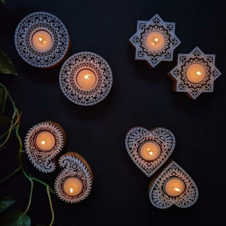 This elegant tealight candle holders is a beautiful addition to any home decor, perfect for creating a warm and inviting atmosphere. Handcrafted with care, it comes with a complimentary tealight candles, making it an ideal choice for festive celebrations like Diwali. Its natural wooden finish adds a touch of rustic charm, blending seamlessly with various decor styles. Whether used for festive occasions or as a thoughtful gift, this candle holder is designed to bring warmth and light to any space, making it a perfect addition to your home or a meaningful gift for loved ones.